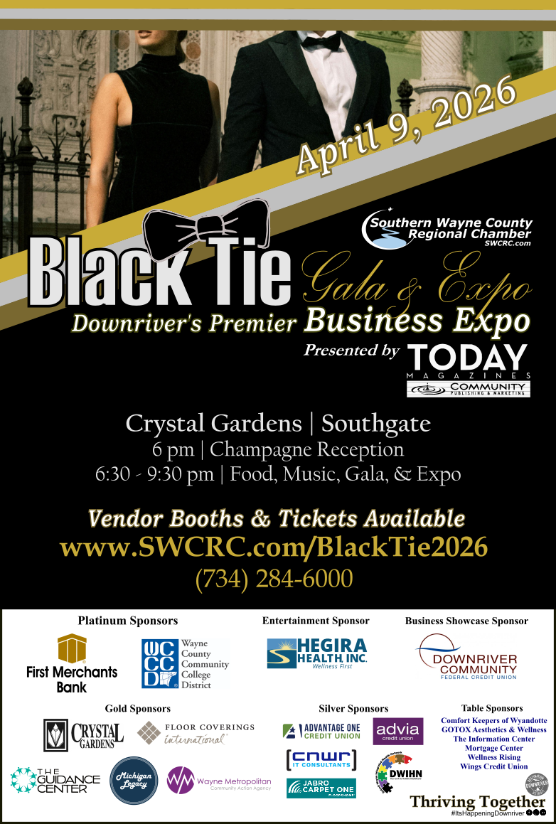 Experience the elegance of the Southern Wayne County Regional Chamber’s finest event, the Black Tie Gala & Expo! Join us at Downriver’s premier business expo, featuring a unique and elegant gala celebration. The event will feature an open floor plan for the expo with seating for guests, providing a valuable opportunity for networking with regional leaders, enjoying great music, and tasting delicious delicacies in between visiting our amazing expo vendors! This is your opportunity to market your business to small business owners, corporate and non-profit executives, and municipal officials at this prestigious expo and gala! Formal attire is requested, and the event will feature a resourceful expo, delicious food, an open bar, live entertainment, and great fun!